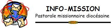 Info-Mission est une publication électronique d'information et de réflexion, en format PDF, destinée à toute personne intéressée par la dimension missionnaire de la vie de l'Église. Elle est plubliée à toutes les deux semaines par le service diocésain de la pastorale missionnaire.
